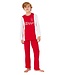 Ajax pyjama in de kleur Wit Rood Wit. De Ajax pyjama is 2-delig en is voorzien van het Ajax logo op de rechterborst. De broek is voorzien van een boord met elastiek.