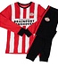 De jongere PSV-fan valt heerlijk in slaap met deze PSV Pyjama op basis van het thuisshirt 2024-2025. De pyjama bestaat uit een rood wit shirt met lange mouwen en een zwarte broek. Zowel het shirt als de broek zijn gemaakt van 90% katoen en 10% polyester.